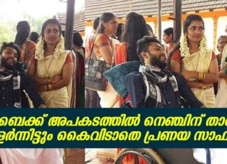 ബൈക്ക് അപകടത്തിൽ നെഞ്ചിന് താഴെ തളർന്നിട്ടും കൈവിടാതെ പ്രണയ സാഫല്യം..!!