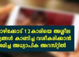കോഴിക്കോട് 12 കാരിയെ അശ്ലീല ദൃശ്യങ്ങള് കാണിച്ചു വശീകരിക്കാൻ ശ്രമിച്ച അദ്ധ്യാപിക അറസ്റ്റിലായി; സംഭവം...