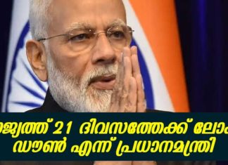 രാജ്യത്ത് 21 ദിവസത്തേക്ക് സമ്പൂർണ്ണ ലോക്ക് ഡൌൺ പ്രഖ്യാപനം നടത്തി പ്രധാനമന്ത്രി..!!