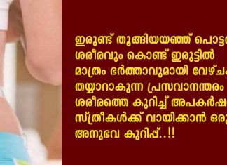 ഇരുണ്ട് തൂങ്ങിയയഞ്ഞ് പൊട്ടല്വീണ ശരീരവും കൊണ്ട് ഇരുട്ടില് മാത്രം ഭര്ത്താവുമായി വേഴ്ചക്ക് തയ്യാറാകുന്ന പ്രസവാനന്തരം...