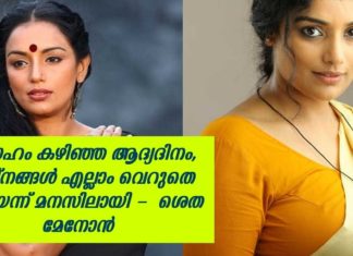 വിവാഹം കഴിഞ്ഞ ആദ്യ ദിവസം സ്വപ്നങ്ങളെല്ലാം വെറുതെ ആയെന്നു മനസിലായി; ശ്വേതാ മേനോൻ..!!