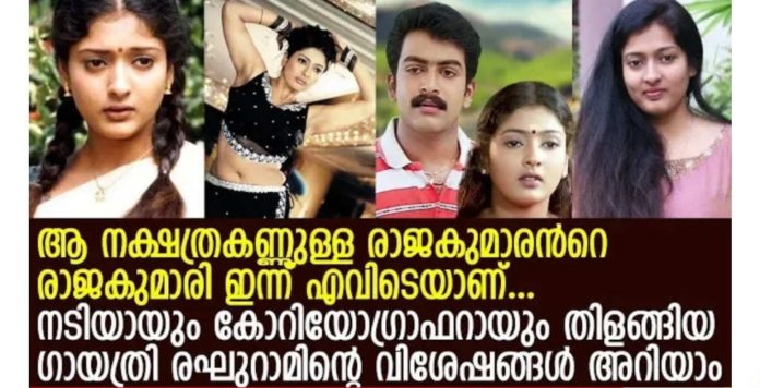 പൃഥ്വിരാജ് സുകുമാരൻ നായകനായി 2002 ൽ പുറത്തിറങ്ങിയ ചിത്രം ആണ് നക്ഷത്ര കണ്ണുള്ള രാജകുമാരൻ അവനുണ്ടൊരു രാജകുമാരി. ആ ചിത്രത്തിൽ പ്രിത്വിരാജിന്റെ നായികയായി എത്തിയ ഗായത്രി രഘുറാം എല്ലാവര്ക്കും സുപരിചിതയാണ്. മലയാളത്തിൽ ഒരു സിനിമ മാത്രം ആണ് ചെയ്തുള്ളൂ എങ്കിലും തമിഴിലും തെലുങ്കിലും എല്ലാം മിന്നും താരം കൂടിയാണ് ഗായത്രി.