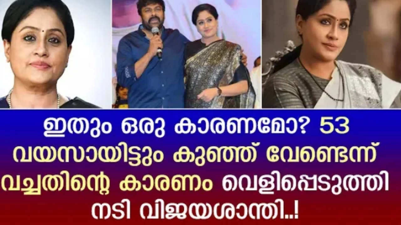 യുവതുർക്കി എന്ന ചിത്രത്തിൽ കൂടി മലയാളത്തിൽ ശ്രദ്ധേയമായ വേഷം ചെയ്ത താരമാണ് വിജയശാന്തി. കല്ലുകൊണ്ടൊരു പെണ്ണ് എന്ന ചിത്രത്തിലും താരം അഭിനയിച്ചുട്ടുണ്ട്. നിരവധി അന്യഭാഷാ ചിത്രങ്ങളിൽ വേഷം ചെയ്ത താരം വിവാഹം കഴിഞ്ഞിട്ടും ഏറെ കാലമായി കുഞ്ഞുങ്ങൾ വേണ്ട എന്നുള്ള തീരുമാനത്തിൽ ആണ്. എന്നാൽ ആ കാരണം താരം ഇപ്പോൾ വെളിപ്പെടുത്തിയിരിക്കുകയാണ്.