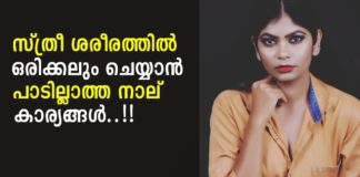 സ്ത്രീ ശരീരത്തിൽ ഒരിക്കലും ചെയ്യാൻ പാടില്ലാത്ത നാല് കാര്യങ്ങൾ..!!