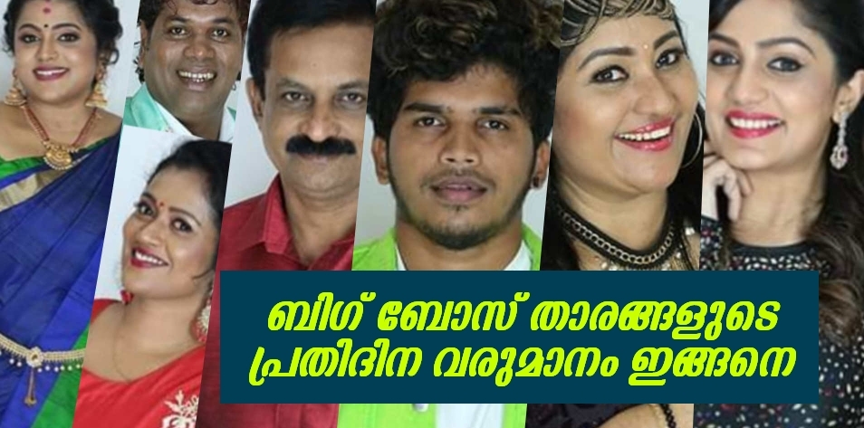 ജനുവരി 5 നു തുടങ്ങിയ ഷോയിൽ ആദ്യം ഉണ്ടായിരുന്ന ഇപ്പോൾ പുറത്താക്കപ്പെട്ട താരങ്ങളിൽ ഒരാൾ കൂടിയായ രജനി ചാണ്ടിക്ക് 30000 രൂപയാണ് പ്രതി ദിനം ലഭിച്ചിരുന്നത്. എലീന പണിക്കർ. കോമഡിയും ചളികളും ഒക്കെയായി ബിഗ് ബോസ് ഹൌസിൽ ഉള്ള താരത്തിന് 35000 ആണ് നൽകുന്നത്. ആർ ജെ രെഘുവിന് ഒരു ദിവസം കൊടുക്കുന്നത് 25000 രൂപ ആണ് നൽകുന്നത്. ബഡായി ആര്യക്ക് ഒരു ദിനം നൽകുന്നത് 35000 രൂപയാണ് . പാഷാണം ഷാജിക്ക് ഒരു ദിവസം നൽകുന്നത് 40000 രൂപയാണ്. വീണ നായർക്ക് നൽകുന്നത് 35000 രൂപയാണ്.