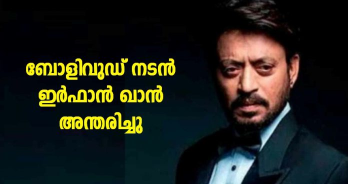 വൻകുടലിലുണ്ടായ അണുബാധയെ തുടർന്ന് ബോളിവുഡ് നടൻ ഇർഫാൻ ഖാൻ മുംബൈ കോകിലാബെന് ധീരുഭായ് അംബാനി ആശുപത്രിയിൽ തീവ്രപരിചരണ വിഭാഗത്തിൽ ചികിൽസയിൽ ഉള്ളപ്പോൾ ആണ് മരണം.
