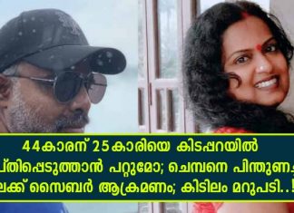 44കാരന് 25കാരിയെ കിടപ്പറയിൽ തൃപ്തിപ്പെടുത്താൻ പറ്റുമോ; ചെമ്പനെ പിന്തുണച്ച കലക്ക് സൈബർ ആക്രമണം; കിടിലം മറുപടി..!!