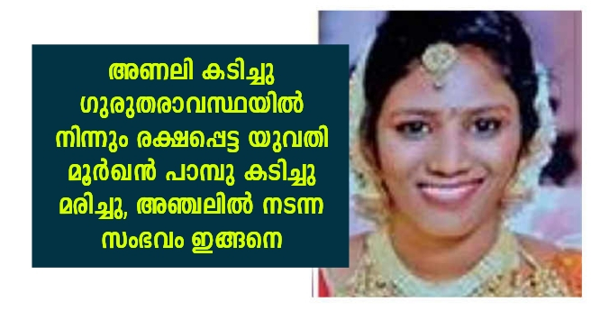 ഭർത്താവിന്റെ വീട്ടിൽ വെച്ച് അണലി കടിച്ചു ഗുരുതരാവസ്ഥ തരണം ചെയ്ത യുവതിയെ സ്വന്തം വീട്ടിൽ വെച്ച് വീണ്ടും പാമ്പു കടിയേറ്റ് മരണം. അണലി കടിച്ച യുവതി വീട്ടിൽ ചികിത്സയിൽ ആയിരുന്നപ്പോൾ ആണ് മൂർഖന്റെ കടി ഏൽക്കുന്നത്. അഞ്ചൽ ഏറം വെള്ളിശ്ശേരി വീട്ടിൽ ഉത്ര (25) ആണ് മരിച്ചത്. രാവിലെ ചായ നൽകാൻ എത്തിയ...