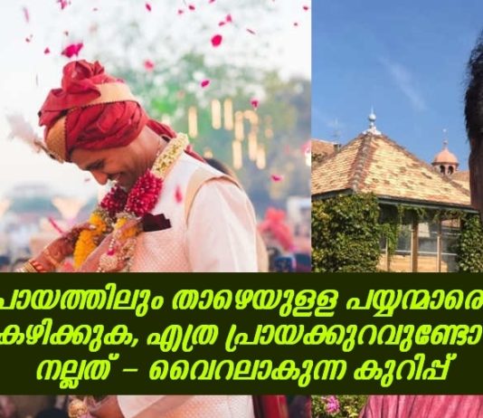 സ്വന്തം പ്രായത്തിലും താഴെയുളള പയ്യന്മാരെ നോക്കി കല്യാണം കഴിക്കുക; എത്ര പ്രായക്കുറവുണ്ടോ അത്രയും നല്ലത്; വൈറലാകുന്ന കുറിപ്പ്..!!