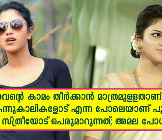 അവന്റെ കാമം തീർക്കാൻ മാത്രമുള്ളതാണ് അവൾ; കന്നുകാലികളോട് എന്ന പോലെയാണ് പുരുഷൻ സ്ത്രീയോട് പെരുമാറുന്നത്; അമല പോൾ..!!