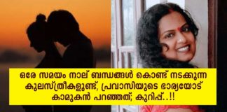 ഒരേ സമയം നാല് ബന്ധങ്ങൾ കൊണ്ട് നടക്കുന്ന കുലസ്ത്രീകളുണ്ട്; പ്രവാസിയുടെ ഭാര്യയോട് കാമുകൻ പറഞ്ഞത്;...