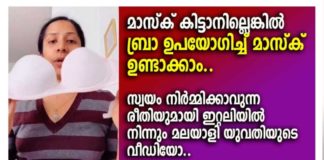 മാസ്ക് കിട്ടാനില്ല എങ്കിൽ ബ്രാ കൊണ്ട് ഉണ്ടാക്കാം; വീട്ടിൽ തന്നെ ഉണ്ടാക്കുന്ന അടിപൊളി മാസ്കുമായി...