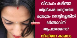 വിവാഹം കഴിഞ്ഞ സ്ത്രീകള് നെറ്റിയില് കുങ്കുമം തൊട്ടില്ലെങ്കില് ഭര്ത്താവിന് ആപത്തോ; സത്യാവസ്ഥ എന്താണ്..!!