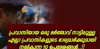 എല്ലാ പ്രവാസികളുടെയും ഭാര്യമാർക്കായി ഒരു പ്രവാസി ഭർത്താവ് നൽകുന്ന 10 ഉപദേശങ്ങൾ..!!