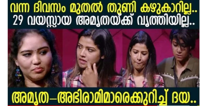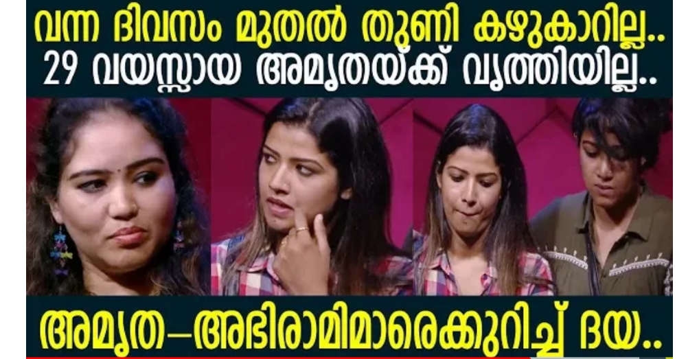 വൃത്തി ഇല്ലായ്മ ആണ് അമൃതയിൽ ദയ കാണുന്ന പോരായ്മ. വീട്ടിൽ പാട്ടുകൾ പാടുന്നത് അല്ല വലിയ കാര്യം. വസ്ത്രങ്ങൾ കഴുകാത്തത് കൊണ്ട് ഈച്ചയും കൊതുകയും കാരണം ഉറങ്ങാൻ പോലും കഴിയുന്നില്ല എന്നും ദയ പറയുന്നു.