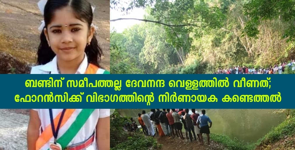 വീടിന് സമീപത്തെ കുളിക്കടവിൽ നിന്നായിരിക്കാം കുട്ടി വെള്ളത്തിലേക്ക് വീണതെന്നാണ് ഫോറൻസിക് വിദഗ്ദരുടെ നിഗമനം. ദേവനന്ദയുടെ വയറ്റിൽ ചെളിയുടെ അംശം കൂടുതൽ ആണെന്നും അത്രയും ചെളി ബണ്ടിന്റെ ഭാഗത്ത് ഉണ്ടാകില്ല എന്നും ആണ് ഫോറൻസിക് വിഭാഗം കരുതുന്നത്.
