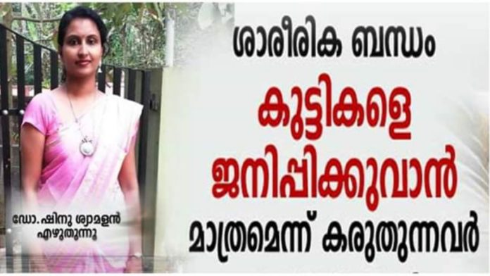 ശാരീരിക ബന്ധം എന്നു കേള്ക്കുമ്ബോള് കുട്ടികളെ ജനിപ്പിക്കുവാന് മാത്രമുള്ളയെന്തോ ഒരു പ്രക്രിയയായി മാത്രം കാണുന്നവര് ഇന്നും നമുക്കിടയിലുണ്ട്. മധുവിധു നാളുകളില് പോലും അവന് അവളുടെ നഗ്നത ഇരുട്ടിലല്ലാതെ അനുഭവിച്ചിട്ടില്ല.നീണ്ട ഒരു മാസം അവന് കാത്തിരിക്കേണ്ടി വന്നു.