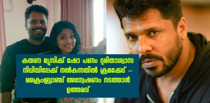 ദുരിതാശ്വാസ നിധിയിലേക്ക് പണം സ്വരൂപിക്കാൻ എന്ന പേരിൽ നടത്തിയ കരുണ മ്യൂസിക് പ്രോഗ്രാമുമായി ബന്ധപ്പെട്ട പണം ഇടപാടിൽ ഉള്ള ക്രമക്കേട് കണ്ടെത്താൻ അന്വേഷണ ഉത്തരവ് ഇട്ടു ക്രൈം ബ്രാഞ്ച്. സംവിധായകൻ ആഷിഖ് അബുവിന്റെ നേതൃത്വത്തിൽ ആയിരുന്നു കരുണ എന്ന മ്യൂസിക് പ്രോഗ്രാം നടന്നത്.
