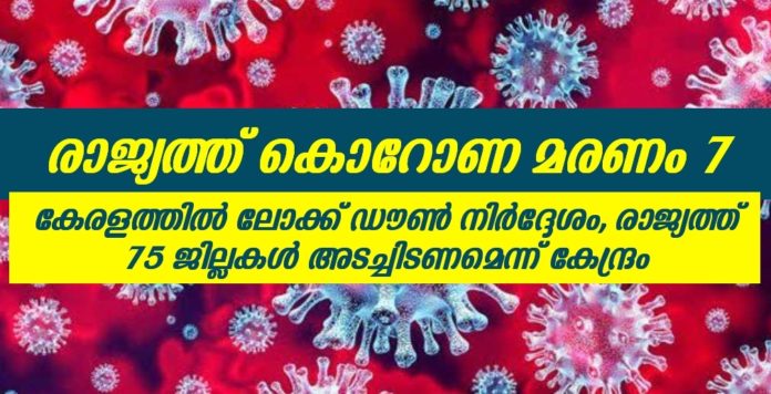 രാജ്യത്ത് കൊറോണ മൂലം ഉള്ള മരണം ഏഴ് എണ്ണം ആയി. രാജ്യത്ത് ആകമാനം 75 ജില്ലകൾ അടച്ചിടാൻ ആണ് നിർദേശം. ഈ ജില്ലകളിൽ കൊറോണ പോസിറ്റീവ് ആയ ആളുകളെ കണ്ടെത്തിയത് കൊണ്ടാണ് കേന്ദ്രം ഇങ്ങനെ ഒരു നിർദേശം നൽകി ഇരിക്കുന്നത്. ജനത കർഫ്യു രാത്രി 9 മണിക്ക് അവസാനിക്കും എങ്കിൽ കൂടിയും തുടർന്ന് ജനങ്ങൾ കൂട്ടത്തോടെ പുറത്തേക്ക് ഇറങ്ങരുത് എന്നാണ് സംസ്ഥാനം നിർദേശിക്കുന്നത്.