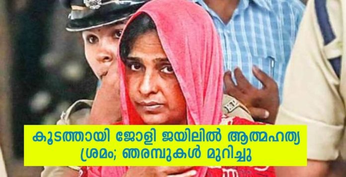 കൂടത്തായി കേസിലെ മുഖ്യപ്രതി ജോളി ജയിലിൽ ഞരമ്പുകൾ മുറിച്ച് ആത്മഹത്യക്ക് ശ്രമിച്ചു..!!