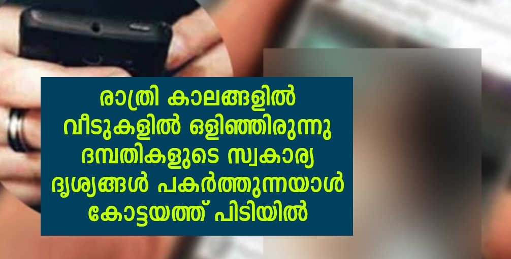 ആർപ്പൂക്കര സ്വദേശി അൻസിൽ ആണ് പിടിയിൽ ആയത്. മുപ്പതു വയസ്സാണ് യുവാവിന്റെ പ്രായം. പകൽ കറങ്ങി നടക്കുന്ന ഇയാൾ അന്നന്ന് കേറാൻ ഉള്ള വീടുകൾ തിരഞ്ഞെടുക്കുകയും തുടർന്ന് രാത്രിയിൽ ഒളിച്ചിരുന്നു ദാമ്പതികളുടെ സ്വകാര്യ ദൃശ്യങ്ങൾ പകർത്തുകയും തുടർന്ന് യുവാക്കൾക്ക് കൈമാറുകയും ആണ് ചെയ്യുന്നത്. ഇയാൾ പിടിയിൽ ആയതോടെ കൂടെ ഉള്ള ആൾ മുങ്ങിയിരിക്കുകയാണ്.