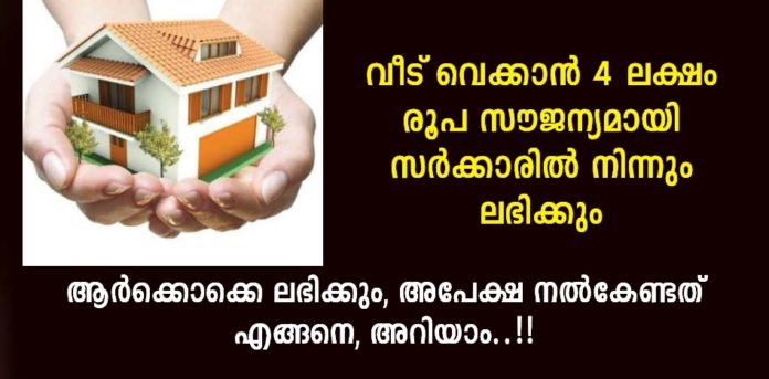 വീട് എന്നത് എല്ലാവരുടെയും സ്വപനം ആണ്. ഒരു വീട് വെക്കാൻ വേണ്ടി വളരെ അധികം കഷ്ടപ്പെടുന്നവർ ആണ് നമ്മളോ നമ്മുടെ സുഹൃത്തുക്കളോ. എന്നാൽ അങ്ങനെ വീട് വെക്കാൻ ഇറങ്ങി തിരക്കിമ്പോൾ സർക്കാരിൽ നിന്നും നിങ്ങൾക്ക് നാല് ലക്ഷം രൂപ വരെ സൗജന്യമായി ലഭിച്ചേക്കാം.