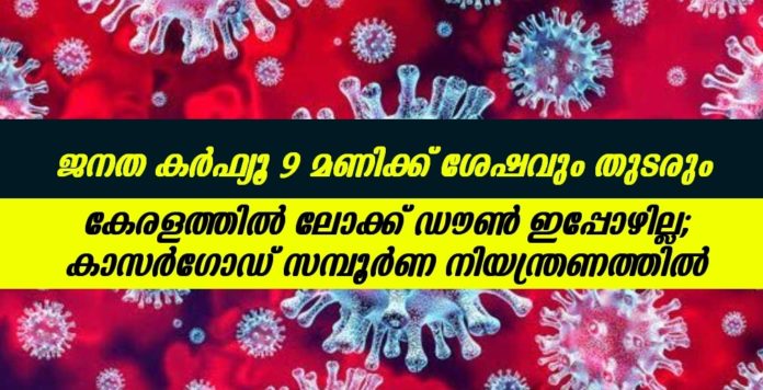 ജനത കർഫ്യൂ 9 മണിക്ക് ശേഷവും തുടരും; കേരളത്തിൽ ലോക്ക് ഡൗൺ ഇപ്പോഴില്ല; കാസർഗോഡ് നിയന്ത്രണത്തിൽ..!!