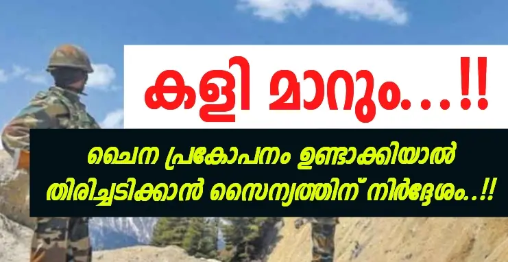 ചൈനയിൽ നിന്നും ഇനി പ്രകോപനം ഉണ്ടായാൽ കടുത്ത ഭാഷയിൽ തിരിച്ചു മറുപടി നൽകാൻ സൈന്യത്തിന് കേന്ദ്ര സർക്കാർ പൂർണ്ണ സ്വന്തന്ത്ര്യം നൽകി. ചൈനയുടെ കടന്നു കയറ്റം തടയാനും കാന്ത മറുപടി നൽകാനും ആണ് തീരുമാനം. അസാധാരണ സാഹചര്യങ്ങൾ ഉണ്ടായാൽ യഥാർത്ഥ നിയന്ത്രണ രേഖയിലെ സൈന്യത്തിന് ആയുധങ്ങൾ ഉപയോഗിക്കാം.