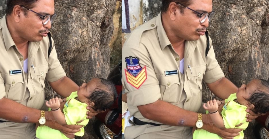 കുഞ്ഞിനെ കൈകളിലിരുത്തി താലോലിക്കുന്ന പോലീസുകാരന്റെ ചിത്രം തെലങ്കാനയിലെ ഐപിഎസ് ഓഫീസറായ രേമ രാജേശ്വരിയാണ് ട്വിറ്ററിലൂടെ ചിത്രം പുറത്ത് വിട്ടത്.
