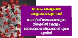 ലോകം കേരളത്തെ മാതൃകയാക്കുമ്പോൾ; കോവിഡ് ഭേതമായവരുടെ നിരക്കിൽ കേരളം ലോകശരാശരിയേക്കാൾ ഏറെ മുന്നിൽ..!!