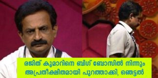 രജിത് കുമാറിനെ ബിഗ് ബോസിൽ നിന്നും അപ്രതീക്ഷിതമായി പുറത്താക്കി; ഞെട്ടൽ..!!