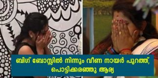 ബിഗ് ബോസ്സിൽ നിന്നും വീണ പുറത്ത്; പൊട്ടിക്കരഞ്ഞു ആര്യ; ഒരു എതിരാളി കൂടി വീണ...
