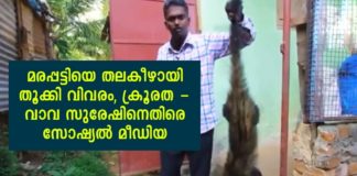 മരപ്പട്ടിയെ പിടികൂടി തലകീഴായി തൂക്കിയിട്ട് വിവരണം; വാവ സുരേഷിനെതിരെ കേസെടുക്കണമെന്ന് സാമൂഹിക മാധ്യമങ്ങൾ..!!