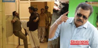 മുട്ടുമടക്കി പോലീസുകാരന്റെ നെഞ്ചത്ത് കേറ്റി സുരേഷ് ഗോപി; വൈറലായി കാവൽ ലൊക്കേഷൻ സ്റ്റിൽ..!!