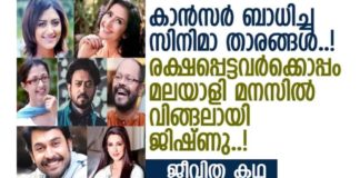 കാൻസർ ബാധിച്ച മലയാള സിനിമ താരങ്ങൾ; രക്ഷപ്പെട്ടവർക്കൊപ്പം മലയാളികളുടെ മനസ്സിൽ വിങ്ങലായി ജിഷ്ണു..!!