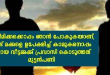 ചേട്ടൻ എന്നോട് ക്ഷമിക്കണം ഞാൻ സലീമിക്കയോടൊപ്പം പോകുകയാണ്; കാമുകനൊപ്പം പോയ വീട്ടമ്മക്ക് കിടിലം പണികൊടുത്ത്...