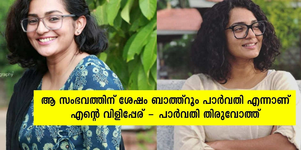 ഇപ്പോഴിതാ അമ്മ സംഘടനാ മീറ്റിങ്ങിൽ ആവശ്യങ്ങൾക്ക് വേണ്ടി സംസാരിച്ചതിൽ കൂടി തന്റെ വിളിപ്പേര് ഇപ്പോൾ ബാത്ത് റൂം പാർവതി എന്നായി എന്നും താരം പറയുന്നു. പാർവതിയുടെ വാക്കുകൾ ഇങ്ങനെ,