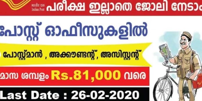 ജൂനിയർ അക്കൗണ്ടന്റ് അതുപോലെ പോസ്റ്റൽ അസിസ്റ്റന്റ് സോർട്ടിങ് അസിസ്റ്റന്റ് പോസ്റ്റ് മാൻ എന്നി തസ്തികകളിലേക്ക് ആണ് ഒഴിവുകൾ. സ്പോഴ്സിൽ എല്ലാം തിളങ്ങി നിൽക്കുന്നവർക്കായി ആണ് ഈ ഒഴിവുകൾ ഉള്ളത്. പരീക്ഷ ഒന്നും എഴുതാതെ മെറിറ്റിന്റെ അടിസ്ഥാനത്തിൽ ആയിരിക്കും നിയമനങ്ങൾ ഉണ്ടാകുക. ജൂനിയർ അക്കൗണ്ടന്റിന് 25500 മുതൽ 81000 വരെയാണ് ശമ്പളം. പോസ്റ്റൽ അസിസ്റ്റന്റ് ആയാലും ഇതേ ശമ്പളം തന്നെയാണ്. എന്നാൽ പോസ്റ്റ് മാൻ ആണെങ്കിൽ 21700 മുതൽ 69100 വരെയാണ് സാലറി. കൂടുതൽ വിവരങ്ങൾ അറിയാൻ വീഡിയോ കാണുക