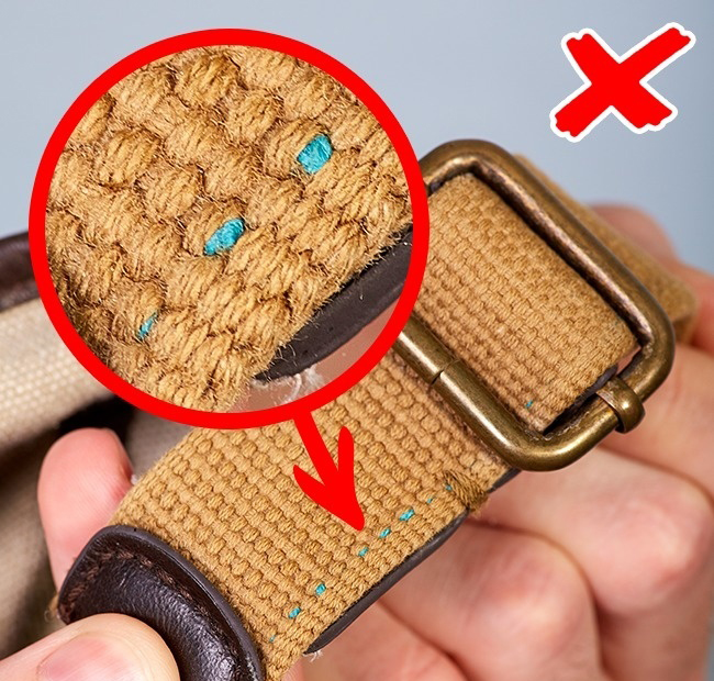 Examine fabric patterns and thread colors. If patterns do not match and stitches are made with threads of different colors, it is a clear sign that this item was made in a hurry. Quantity was probably a priority here, not quality.