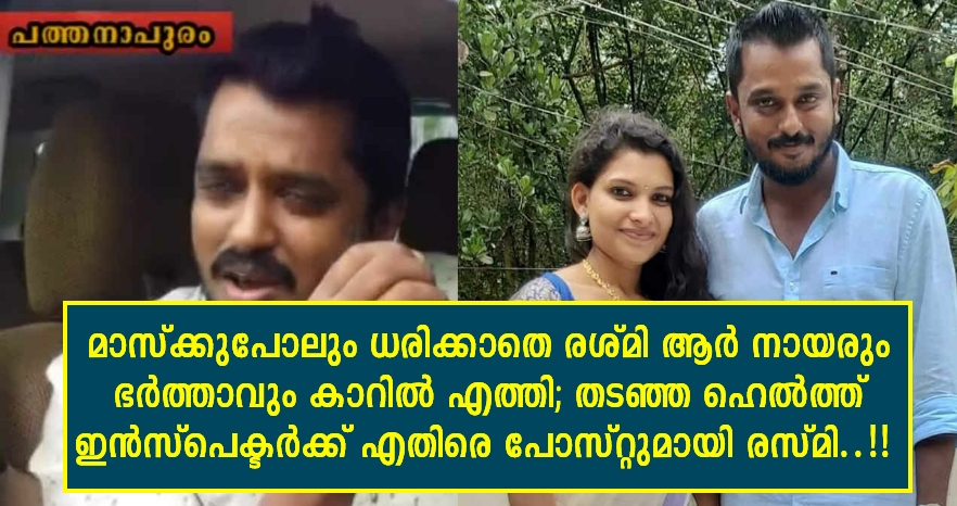 പ്രമുഖ ആക്ടിവിസ്റ്റും മോഡലും ആയ രശ്മി ആർ നായരും ഭർത്താവും സഞ്ചരിച്ച വാഹനം കഴിഞ്ഞ ദിവസം ആണ് ഹെൽത്ത് ഇൻസ്പെക്ടറും പോലീസ് അടക്കം ഉള്ള സംഘം തടഞ്ഞത്. പത്തനാപുരത്ത് വെച്ചാണ് സംഭവം. മാസ്കും സീറ്റ് ബെൽറ്റും ധരിക്കാതെ ആണ് ഇവരും വാഹനത്തിൽ എത്തിയത്. തുടർന്ന് രശ്മി ആർ നായർ ഭർത്താവ് രാഹുൽ പശുപാലൻ എന്നിവരും ഉദ്യോഗസ്ഥരും തമ്മിൽ തർക്കവും ഉണ്ടായി. ജി സി എൻ ന്യൂസ് എന്ന ചാനൽ ആണ് ഇത് സംബന്ധിച്ച വീഡിയോ പുറത്തു വിട്ടിരിക്കുന്നത്. തുടർന്ന് സംഭവത്തെ കുറിച്ച് രശ്മി സോഷ്യൽ മീഡിയയിൽ കുറിച്ചത് ഇങ്ങനെ..