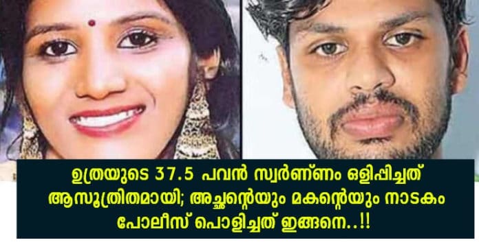ഉത്രയുടെ 37.5 പവൻ സ്വർണ്ണം ഒളിപ്പിച്ചത് ആസൂത്രിതമായി; അച്ഛന്റെയും മകന്റെയും നാടകം പോലീസ് പൊളിച്ചത് ഇങ്ങനെ..!!