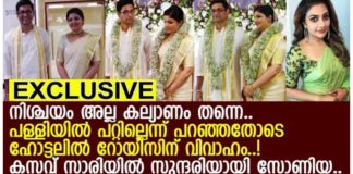 നിശ്ചയമല്ല കല്യാണം; റോയ്സ് ഇനി സോണിയക്ക് സ്വന്തം – കസവ് സാരിയുടുത്ത് സുന്ദരിയായി സോണിയ..!!