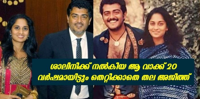 വിവാഹ സമയത്ത് ശാലിനിക്ക് അജിത് നൽകിയ ആ ഒരു വാക്ക് ആണ് ഇപ്പോൾ സോഷ്യൽ മീഡിയയിൽ വൈറൽ ആകുന്നത്. ഒരു മാസത്തിൽ 15 ദിവസം ഷൂട്ടിങ്ങും തിരക്കുമായാൽ കൂടി ബാക്കി 15 ദിവസം കുടുംബത്തിന് വേണ്ടി മാറ്റി വെക്കണം എന്നാണ് ശാലിനി അജിത്തിനോട് ആവശ്യപ്പെട്ടത്.