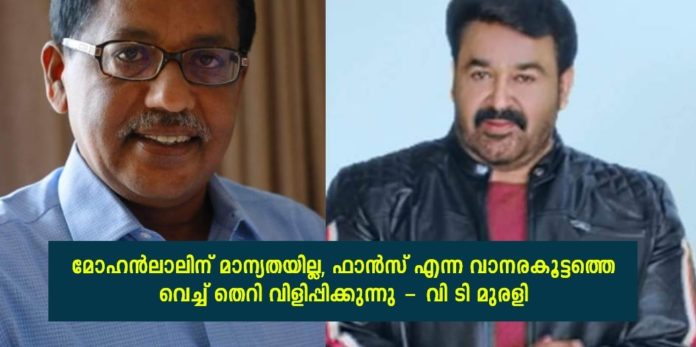 മോഹൻലാലിന് മാന്യതയില്ലന്ന് വി.ടി. മുരളി; ഫാന്‍സ് എന്ന വാനരക്കൂട്ടത്തെ വെച്ച് തെറിവിളിപ്പിക്കുന്നു..!!