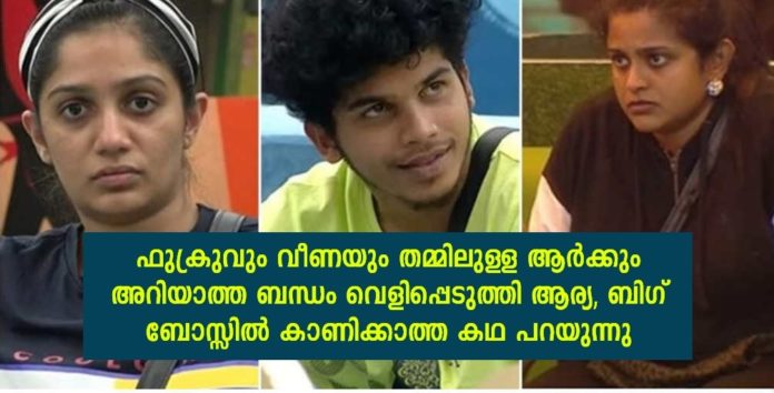 ഈ ഷോയില് അവള് നില്ക്കേണ്ടത് എത്രത്തോളം ആവശ്യമാണെന്ന് എനിക്ക് അറിയാമായിരുന്നു. എന്ത് കാരണത്തിലും അവള് പുറത്ത് പോവണമെന്ന് ഞാന് ആഗ്രഹിച്ചിരുന്നില്ല. ബിഗ് ബോസില് എത്തുന്നതിന് മുന്പ് തന്നെ ഫുക്രുവിന്റെ ആരാധികയായിരുന്നു വീണ. വീട്ടിലെത്തിയതിന് ശേഷം ഫുക്രുവിനെ മകന്റെ പേരായ അമ്പാടി എന്നായിരുന്നു അവള് വിളിച്ചത്.