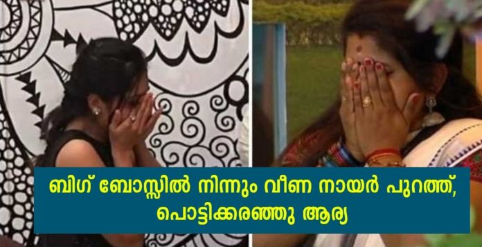 എട്ടാഴ്ച പിന്നിടുമ്പോൾ ബിഗ് ബോസ്സിൽ നിന്നും ഏറെ ശക്തയായ ഒരു മത്സരാർത്ഥി പുറത്തായിരുന്നു. വീണ നായർ ആണ് പുറത്തായിരിക്കുന്നത്. വീണയുടെ പുറത്താകലിൽ ഏറ്റവും കൂടുതൽ തകർന്നത് ആര്യയാണ്. ആര്യയുടെ ഏറ്റവും വലിയ പിന്തുണ ആയിരുന്നു വീണ.