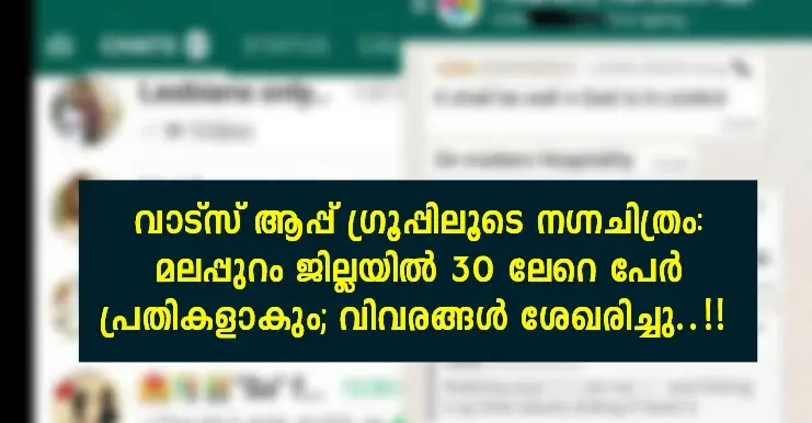 വാട്സാപ്പിൽ കൂടി കുട്ടികളുടെയും സ്ത്രീകളുടെയും അടക്കം നഗ്ന ചിത്രങ്ങൾ പ്രചരിപ്പിക്കുന്ന സംഘത്തെ പോലീസ് തിരിച്ചറിഞ്ഞു. മലപ്പുറം കേന്ദ്രികരിച്ചാണ് ഇവരുടെ പ്രവർത്തനങ്ങൾ. ഗ്രൂപ്പ് അഡ്മിനടക്കം മൂന്നുപേരെ തിങ്കളാഴ്ച അറസ്റ്റുചെയ്തതിന് പിറകേ ജില്ലയിലെ വിവിധ പോലീസ്സ്റ്റേഷൻ പരിധികളിൽ നടത്തിയ അന്വേഷണത്തിലാണ് ഗ്രൂപ്പംഗങ്ങളായ ഇത്രയും പേരെ തിരിച്ചറിഞ്ഞത്.